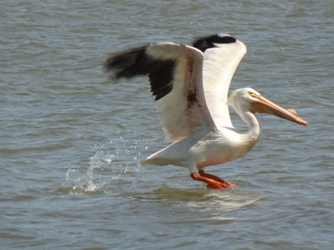 There are many sandbanks in the water. The shallow water and many sandbanks are probably why the pelicans are always returning to the lake.